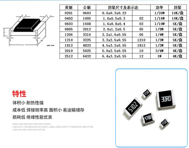 尺寸(英寸):02表示0402、03表示0603、05表示0805、06表示1206、1210表示1210、1812表示1812、10表示2010、12表示2512。